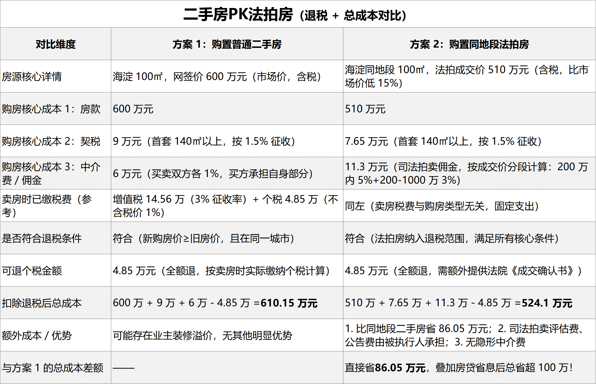 📌 新法拍房提示:法拍房退税需额外准备法院《成交确认书》和个税缴纳凭证,如需协助可联系我们的专业顾问。
